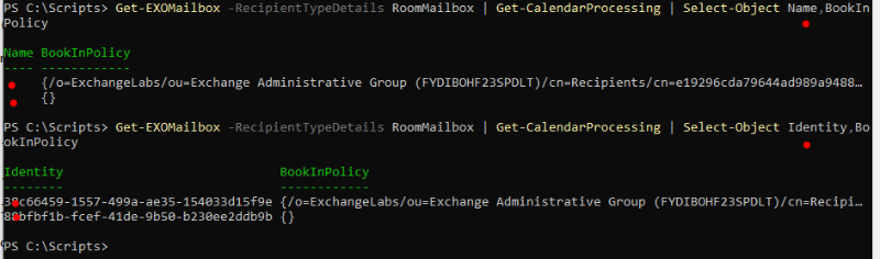 $BookInPolicy = $RoomMailbox | Get-CalendarProcessing